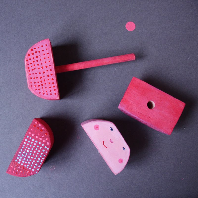 Jou Jou tvoří skvělé skládací panáčky z pestře pomalovaného dřeva. Jednoduché tvary se navlékají na špalík a dají se variabilně přeskupovat, mohou měnit výraz tváře, tvar těla a malé dítě si s nimi může dosytosti vyhrát. Navlékáním dítě cvičí jemnou motoriku, barevnost a výtvarná stylizace zase vedou k rozvoji fantazie a citu.